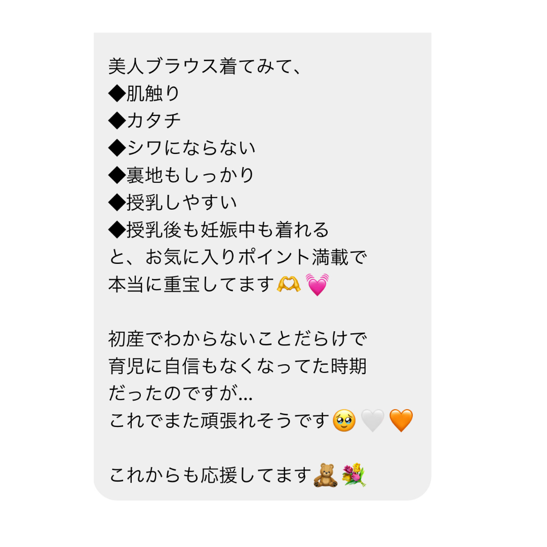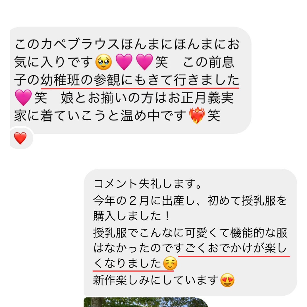 可愛い授乳服を探していたところbitnabiさんのトップスを見つけ購入させていただきました。 使用感も良く、少し厚手ですが授乳が終わってからも着続けたいと思える1着です。