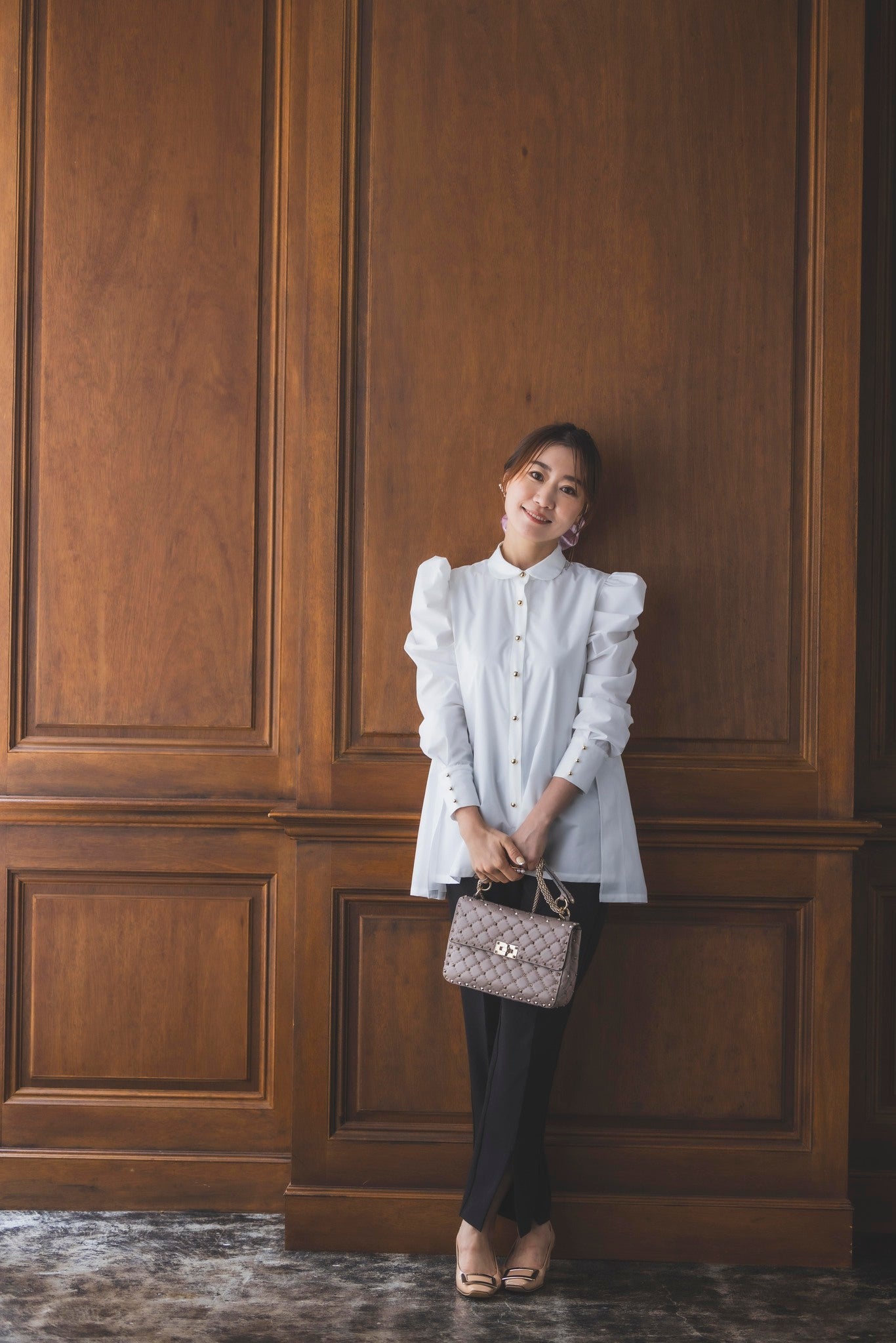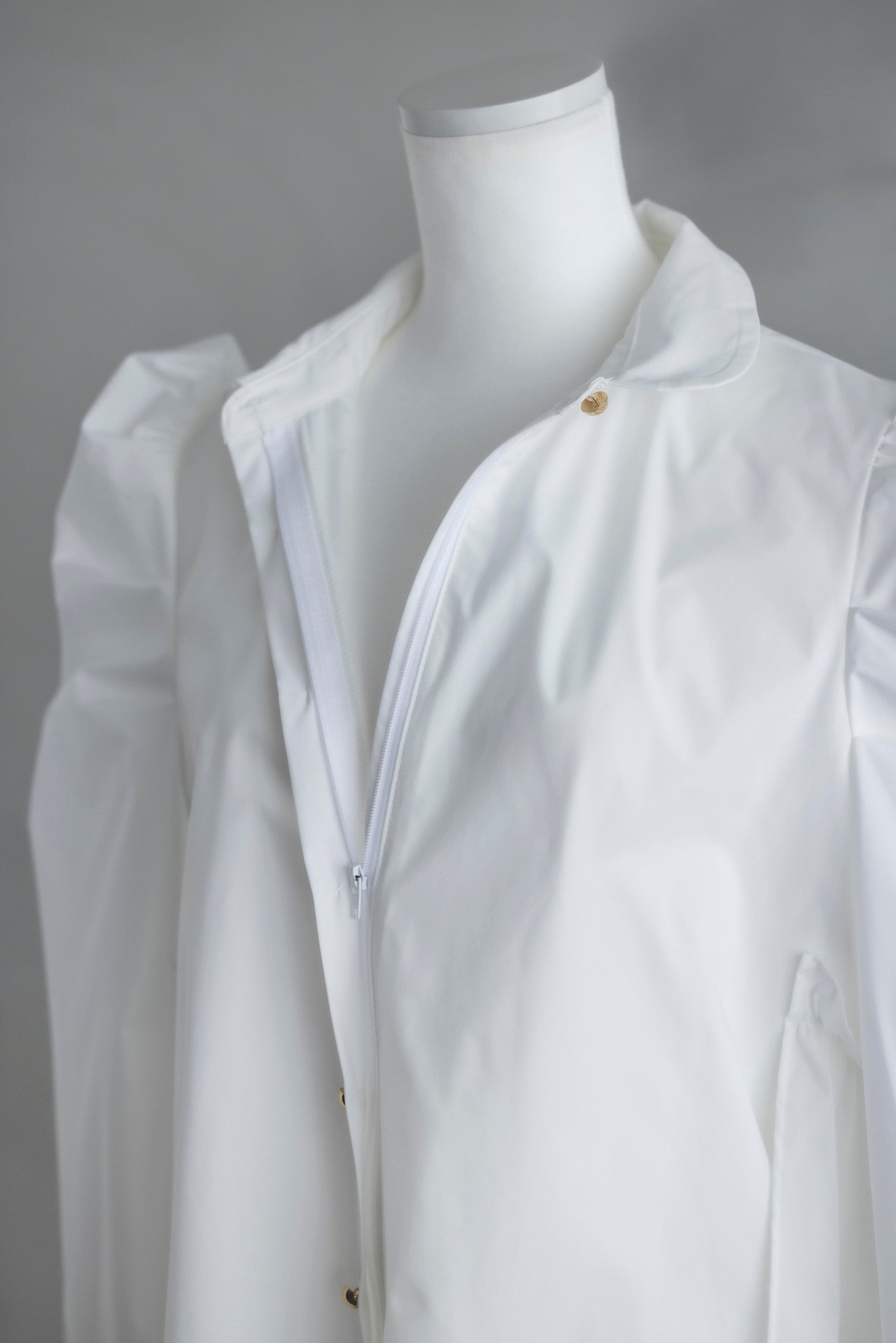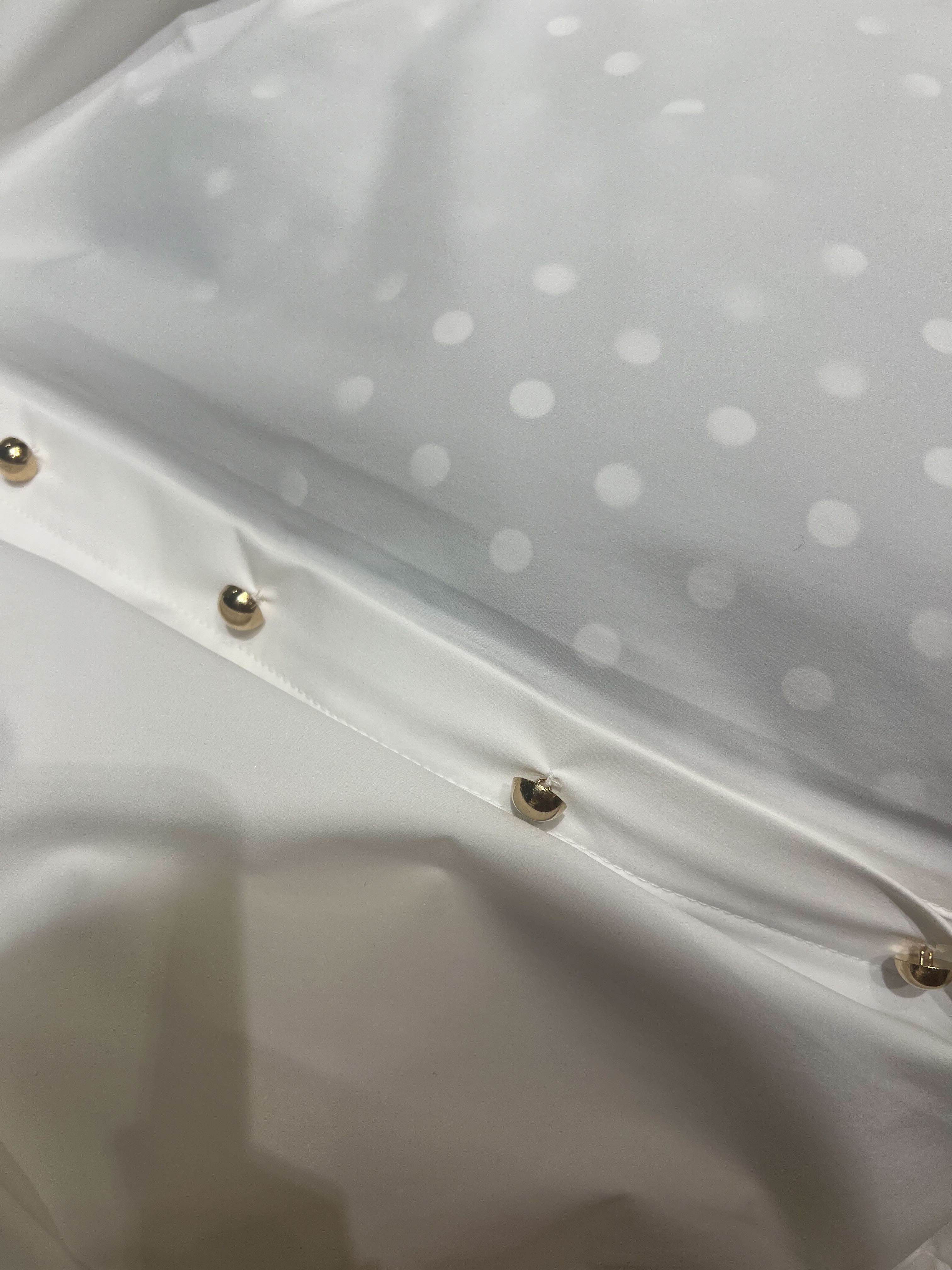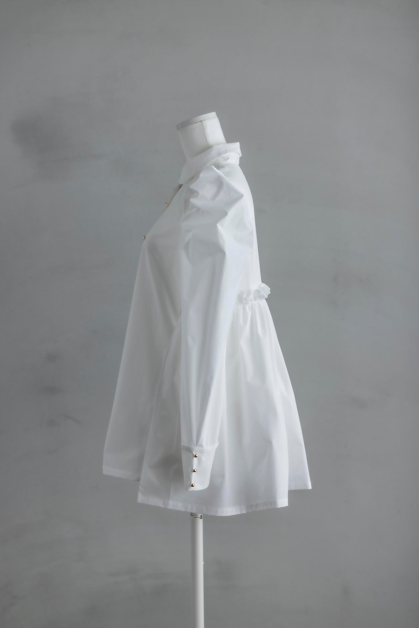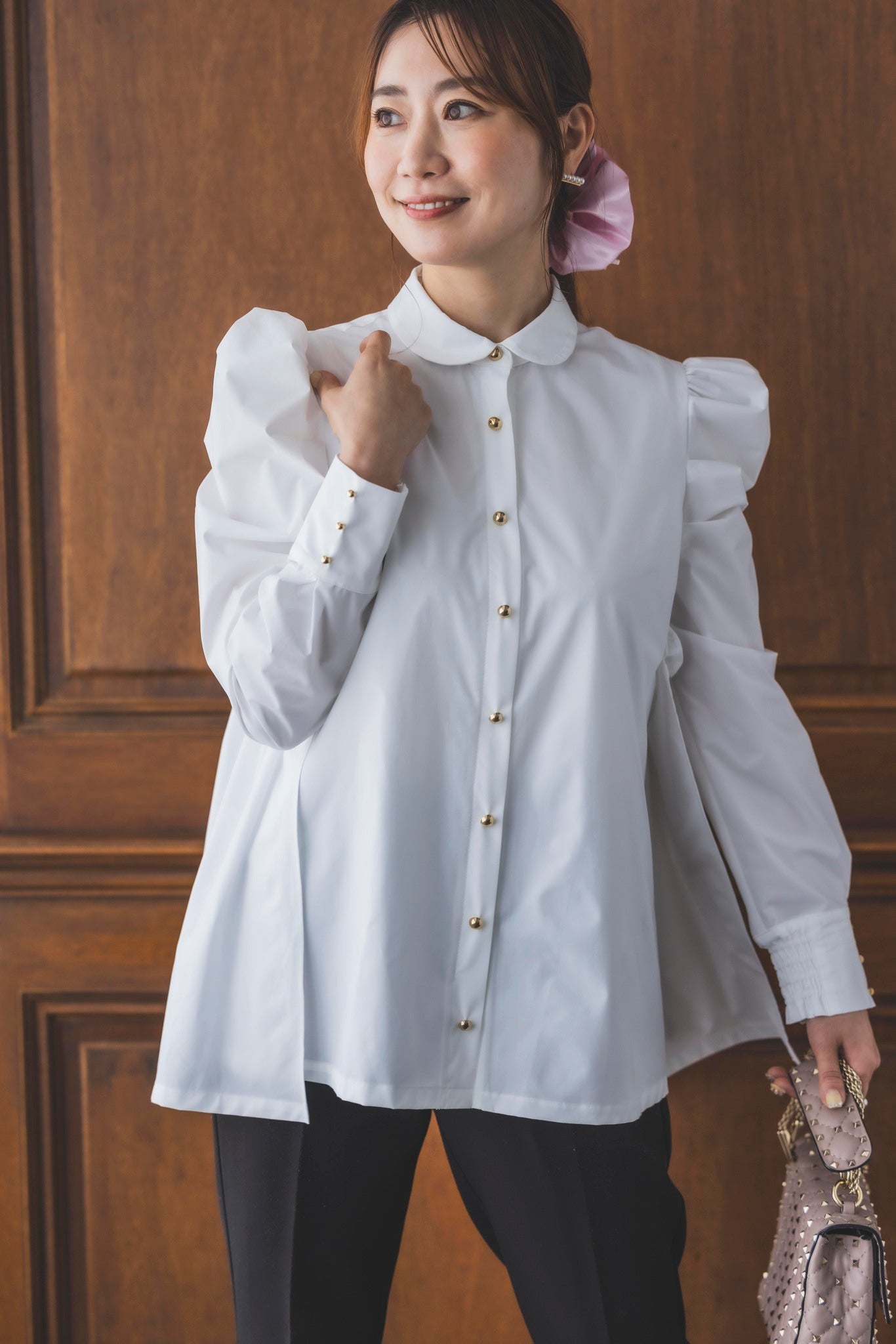 ビンナヌンシャツは「輝くシャツ」という意味です。お生地は撥水加工が施されているので、母乳が沁みる心配がございません。上のお子様がジュースをこぼしたり、コーヒーをこぼしても大丈夫です。高級感のあるゴールドのボタンは実は飾りボタンで、下にチャックが隠れているので、授乳もさっと出来て、着脱も簡単。袖部分も一部シャーリングを施しているので腕まくりが出来て、忙しいママにぴったりです。前向きで輝きたいママに着て欲しい一枚です。