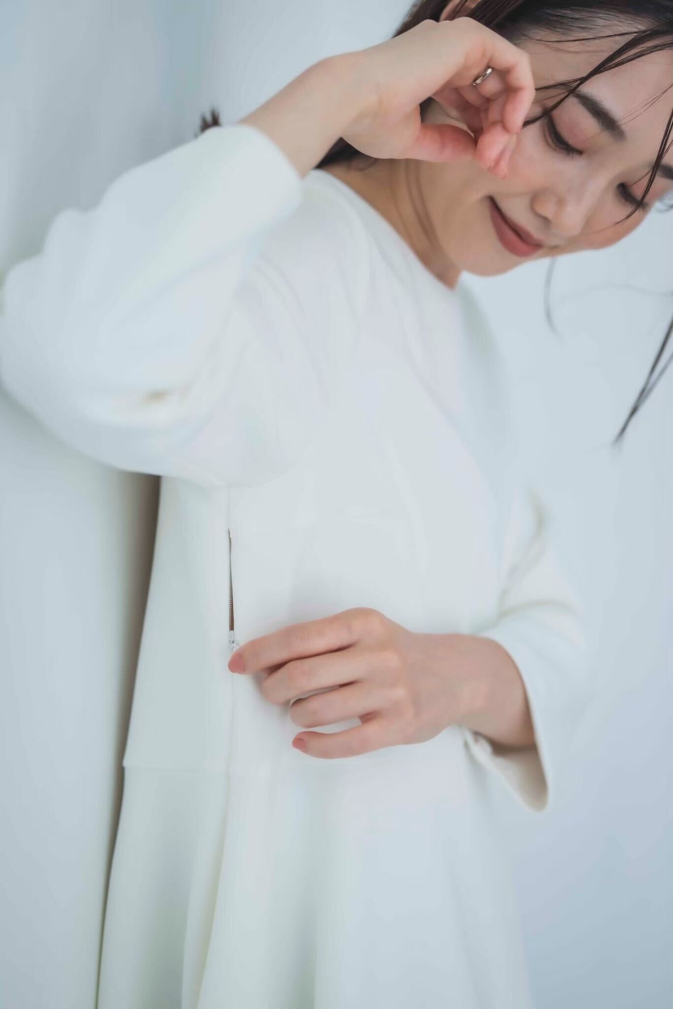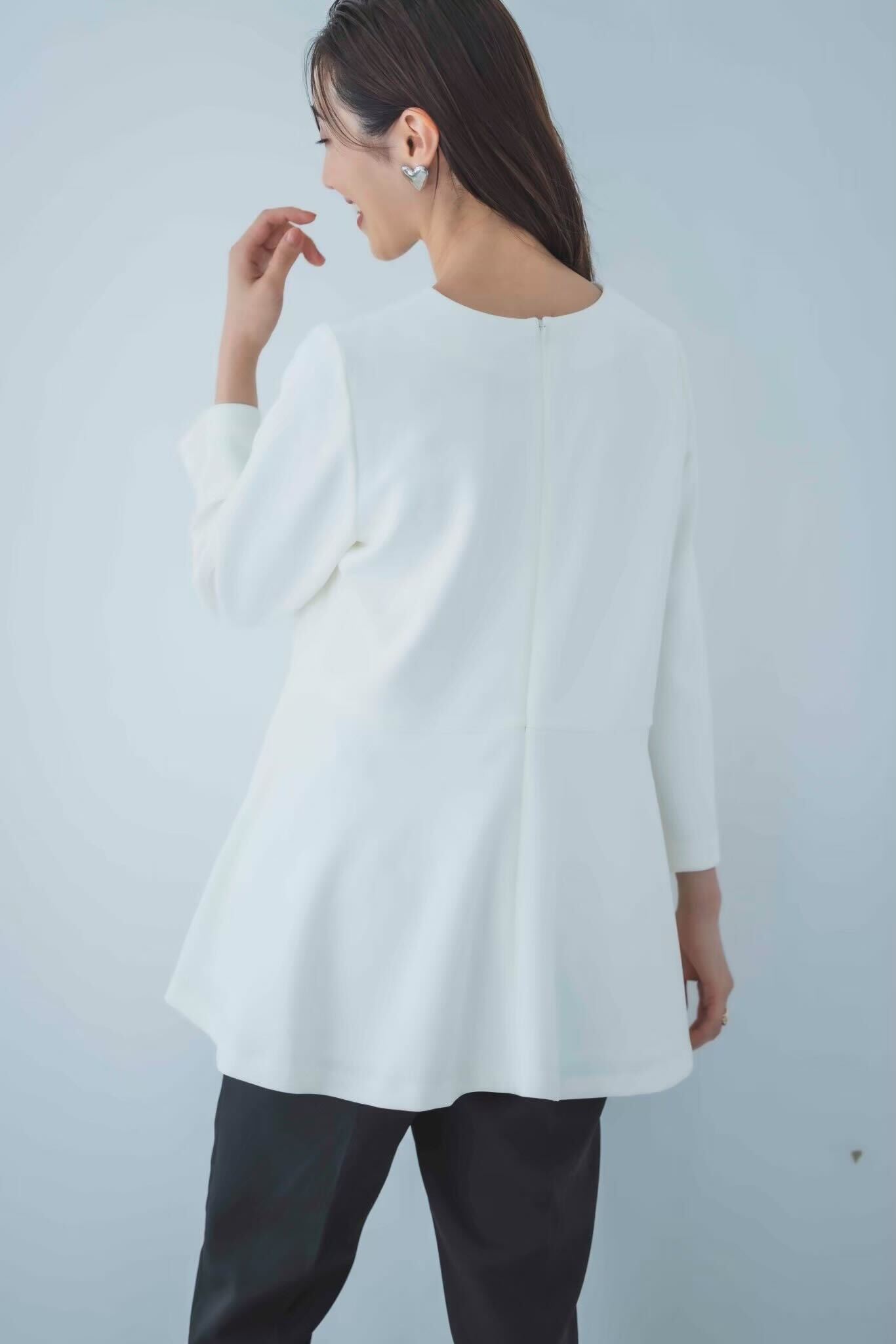 肌触りのいいもちもちのお生地を使ったシンプルなペプラムトップス。
