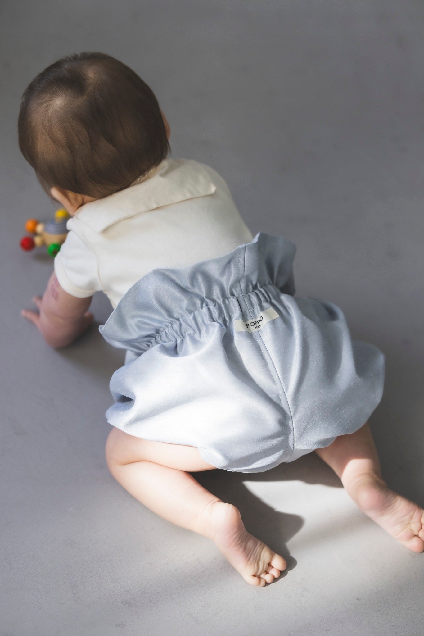 ウエスト部分は柔らかなゴム仕様により、成長する赤ちゃんの体型にも柔軟にフィット。